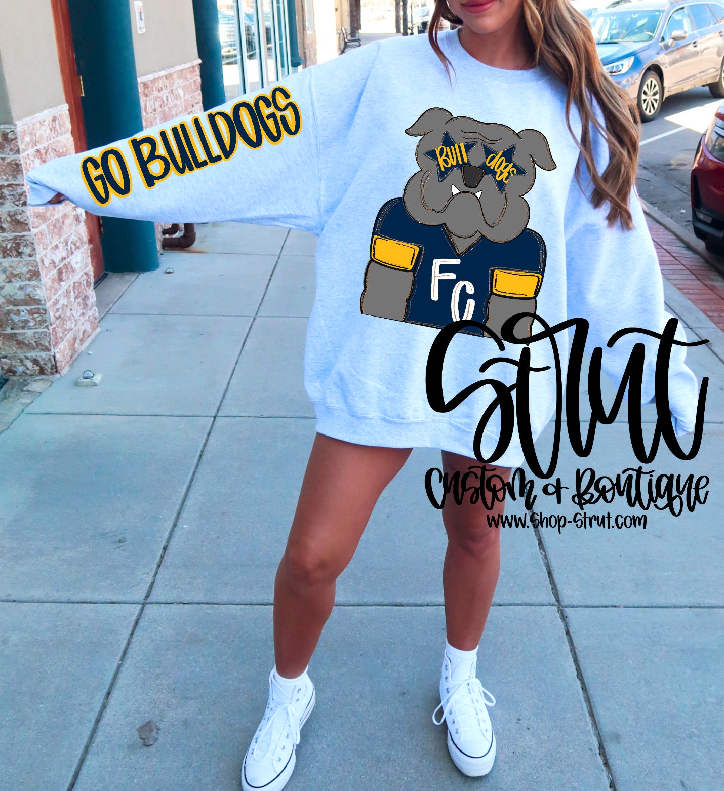 FC Bulldogs - Front & sleeve Preppy Mascot Longsleeve or Sweatshirt