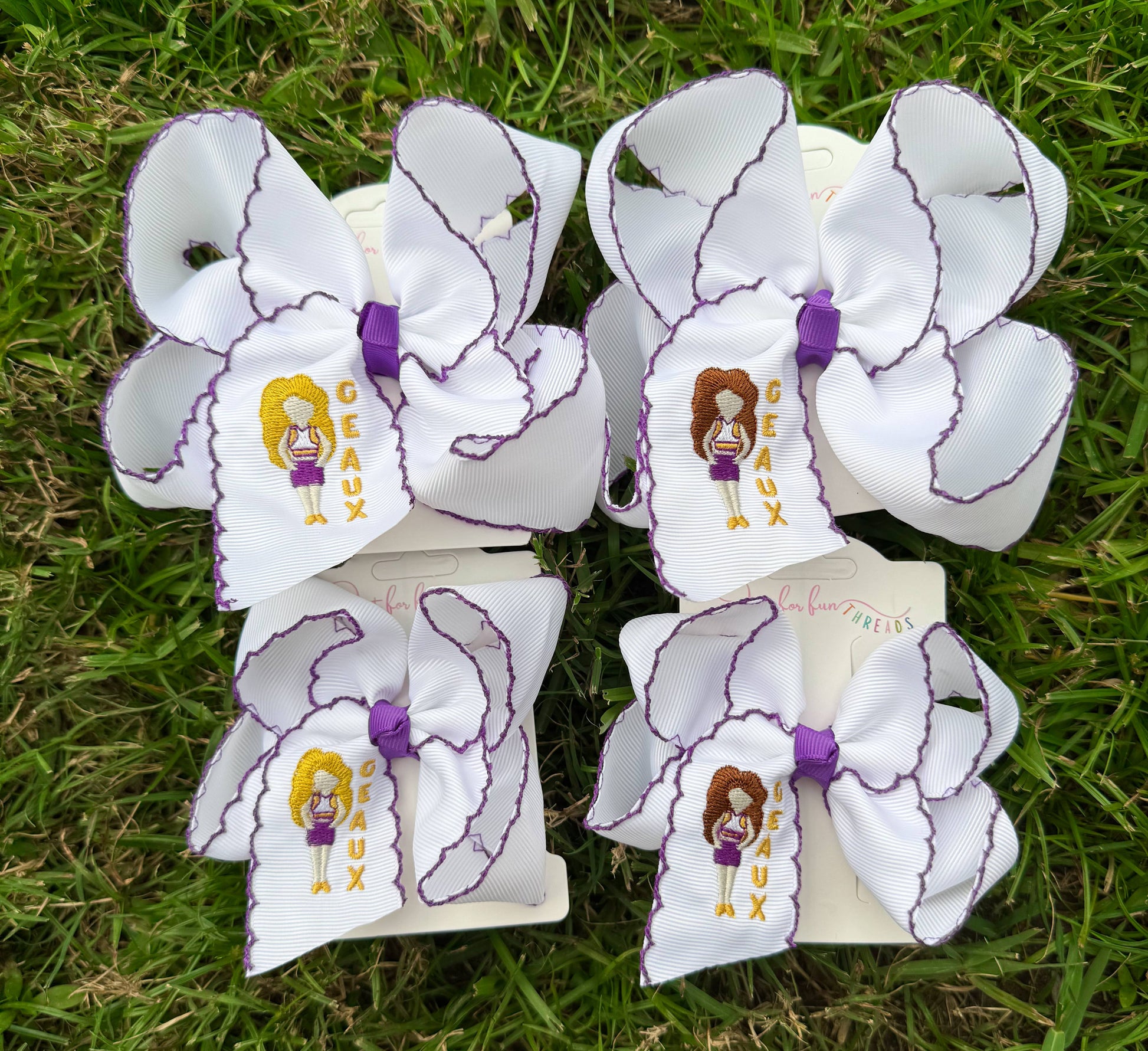 GEAUX Game Day Girl Embroidered Bow: Brown Hair / 4 inch